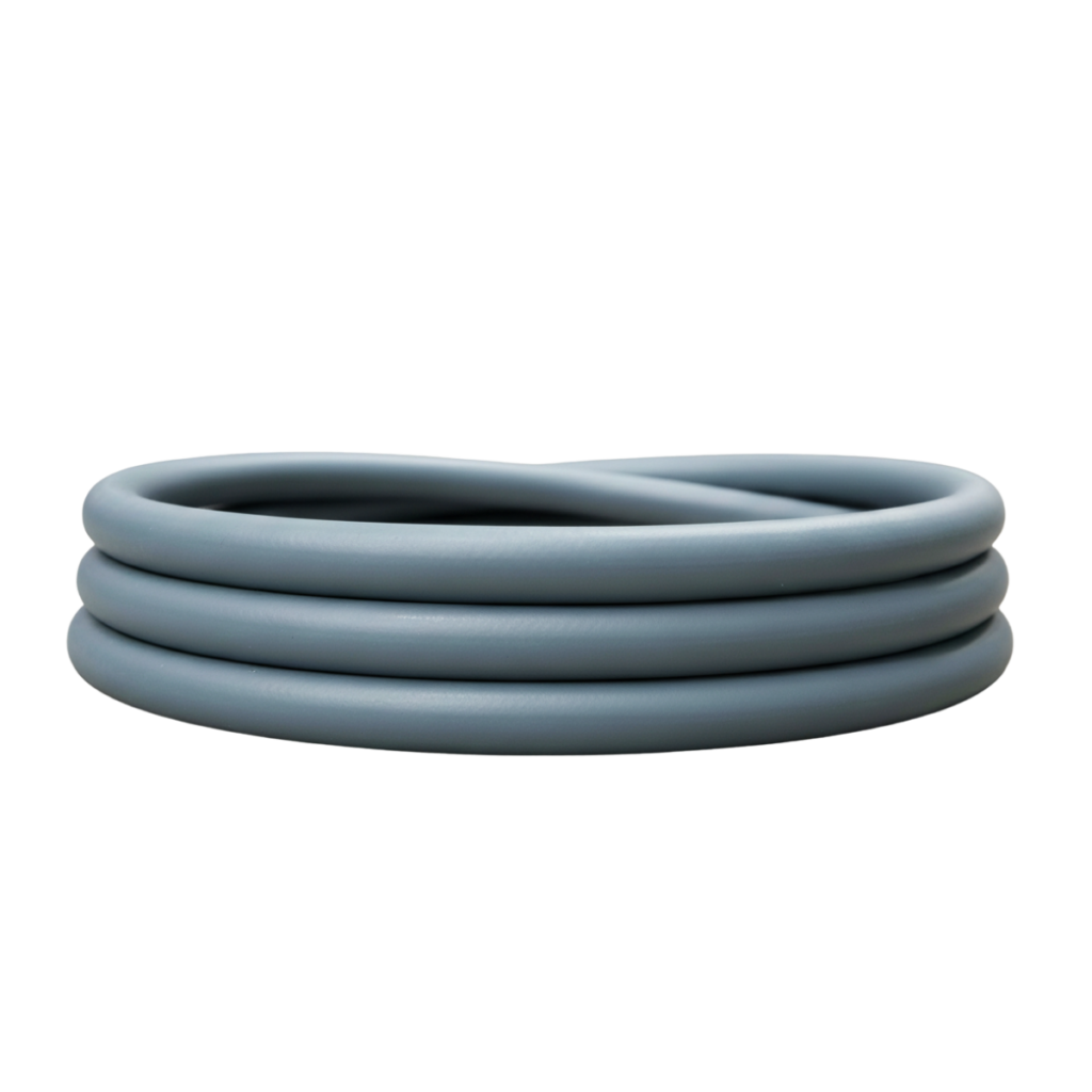Flexible grey PVC (Shore A 70). Tensile strength ≥10 MPa, optimized for durable industrial hoses and profiles.